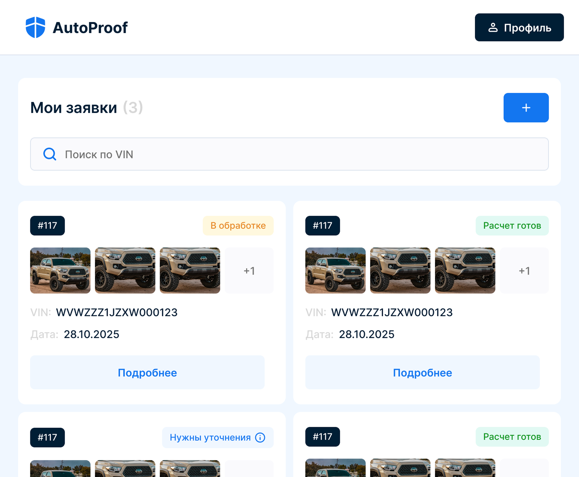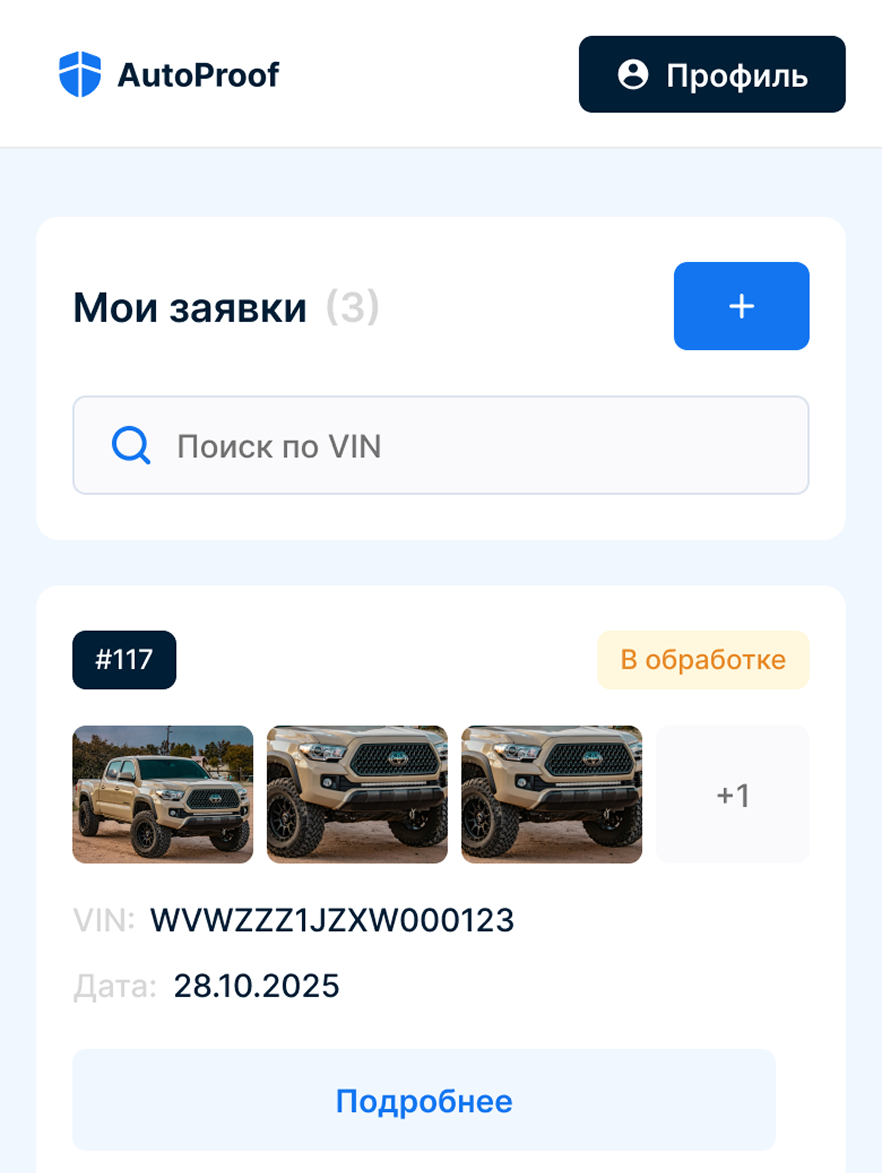 В течение пары суток эксперт AutoProof сделает предварительный отчет по заявке